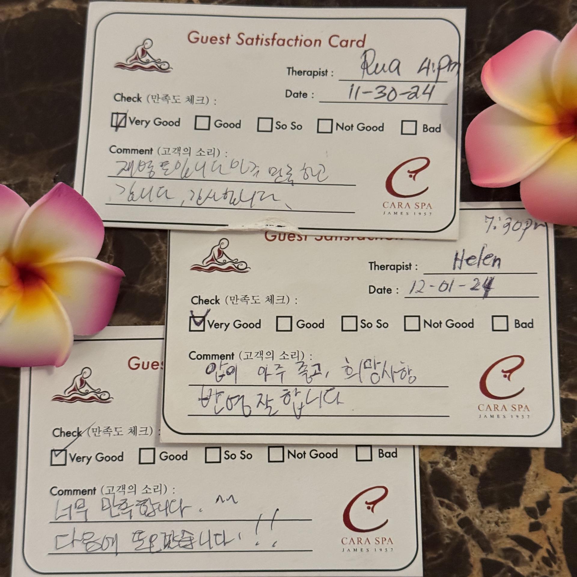 고객 피드백 카드는 카라스파를 이용한 전 고객을 대상으로 하며 매일매일 홈페이지에 업데이트 됩니다.